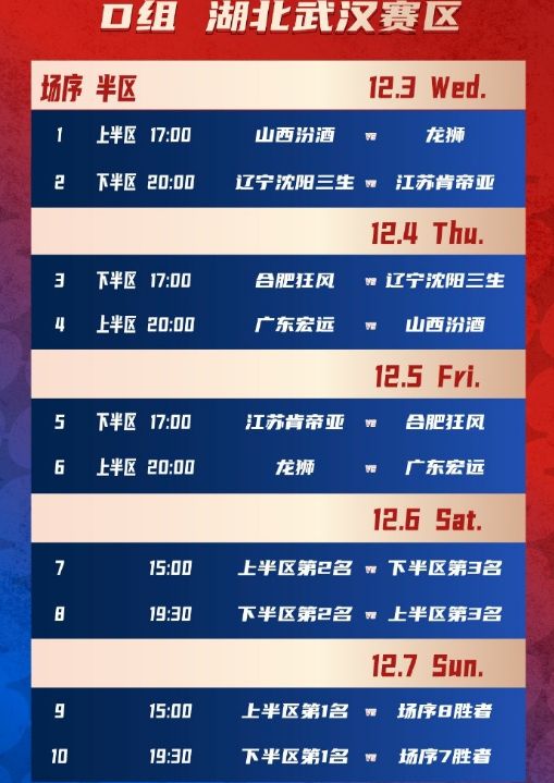 CBA官宣俱乐部杯小组赛赛程:12月3日8日揭幕日卫冕冠军登场