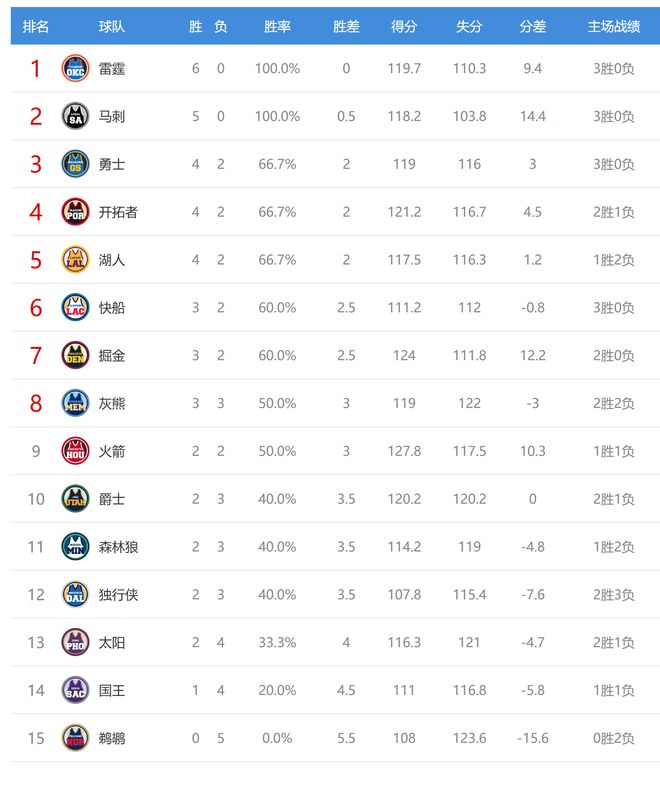 开拓者爆冷击败掘金后,战绩为4胜2负,排名从西部第五来到第四,掘金意外输球给勇士送上大礼,今日没有比赛的勇士(4胜2负)重回西部第三,掘金3胜2负,排名从第三掉到第七。