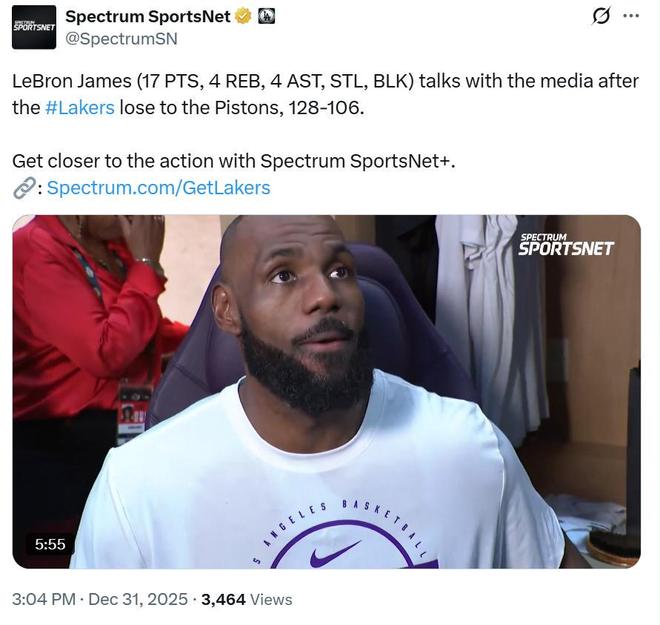 湖人大比分不敌活塞近5战4败,雷迪克公开挑明4大败因!美媒连续发声为41岁老詹鸣不平:让他做自己。