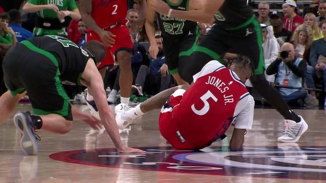 小琼斯是在昨日快船主场115-146不敌凯尔特人的比赛末节受伤。