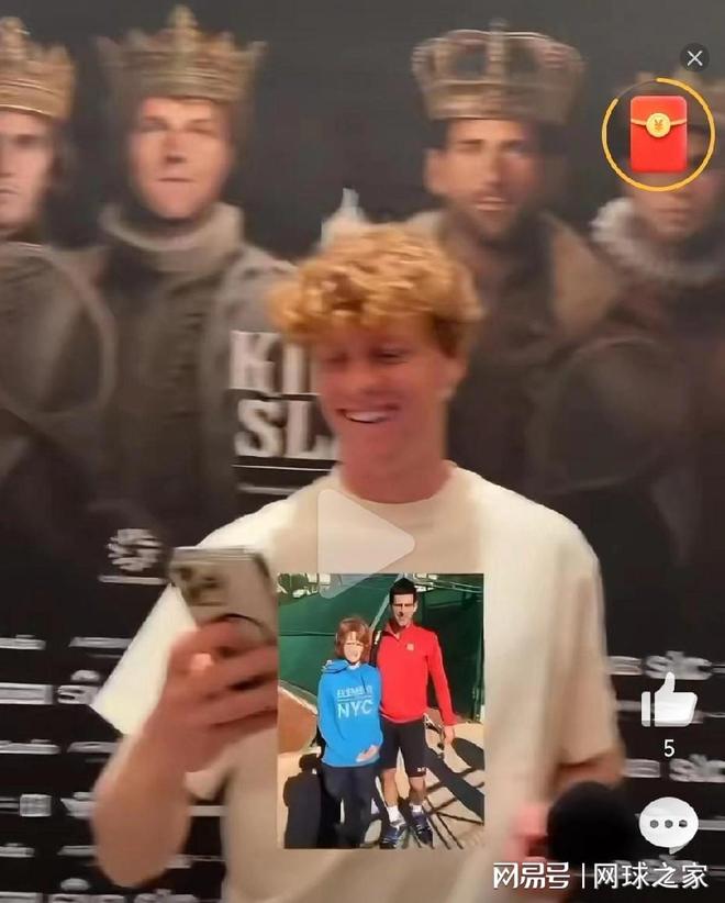 辛纳从小就追星过德约,当意大利人在沙特接受采访,有记者提起这件事,且将当年他和德约的合影照片通过手机展示出来,辛纳先是惊讶,然后表现得相当兴奋。