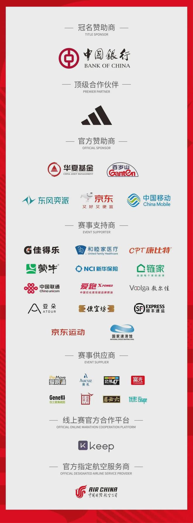 2025北马赞助商名单/图片来源:北京马拉松公众号