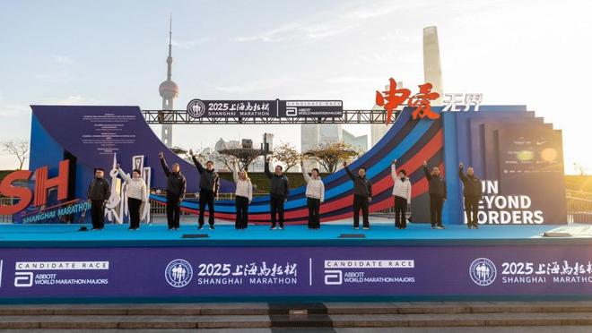 11月30日上午,2025上海马拉松在申城如期启幕。上海市市长龚正点亮2025上海马拉松路赛道,并与世界马拉松大满贯联盟首席执行官道内·斯通、上海市副市长解冬等中外嘉宾一道,为比