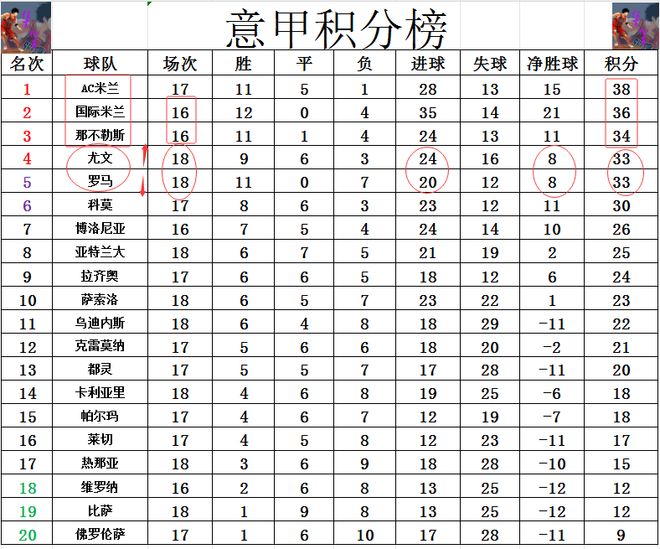 意甲最新积分战报争4激烈!罗马不敌亚特兰大被尤文挤出前4