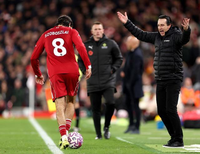 北京时间11月2日凌晨,英超联赛第10轮,利物浦坐镇主场迎战阿斯顿维拉,最终利物浦2-0击败了阿斯顿维拉。比赛尾声,利物浦中场索博斯洛伊在一次边线球期间,尝试“过”掉维拉主帅埃梅