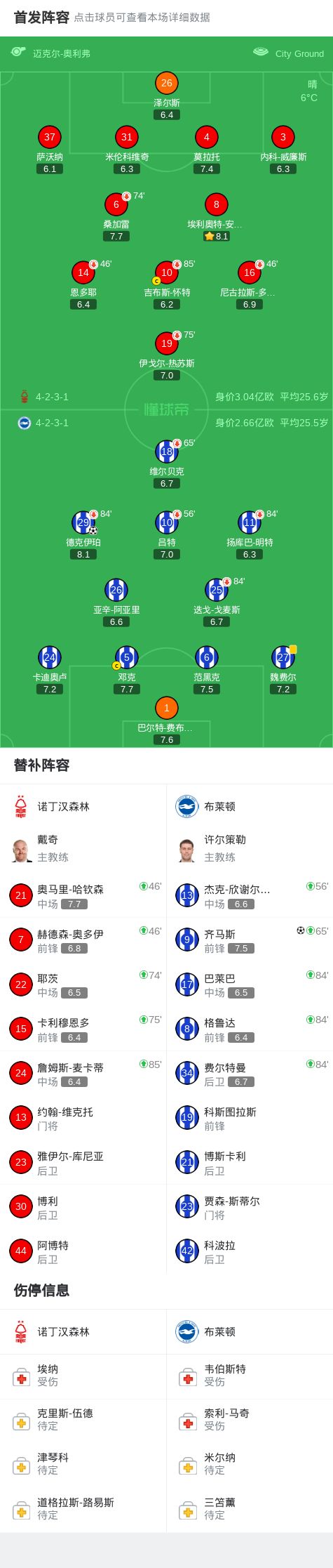 北京时间11月30日,英超联赛第13轮,诺丁汉森林主场迎战布莱顿。上半场补时阶段,德克伊珀为布莱顿打破僵局。随后比赛尾声阶段,莫拉托失误,齐马斯锁定胜局。最终,布莱顿客场2-0完胜