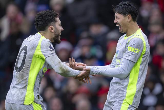 易边再战,曼城迅速打破僵局!第48分钟,格瓦迪奥尔策动攻势,谢尔基跟上直传,赖因德斯插上低射,打穿约翰-维克托的十指关,1-0!
