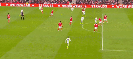 第7分钟,奥多伊左路突破,内切送出传中,伊戈尔-热苏斯、吉布斯-怀特和哈钦森抢点均踢空,皮球滑门而过。