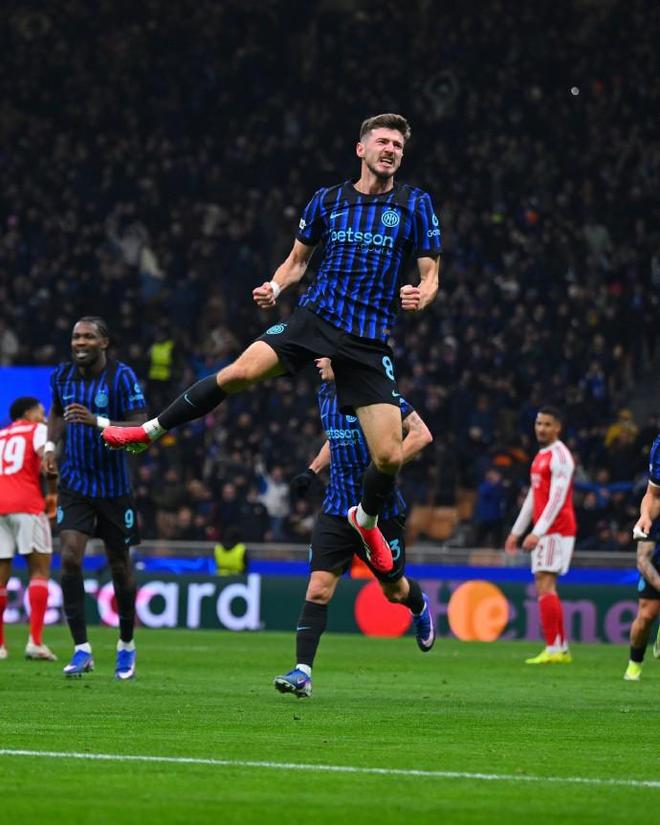 强强对决2队没有进行太多的试探,第10分钟,阿森纳前场连续一脚出球配合,埃泽直传,热苏斯弧顶处回做后立马反方向包抄,斯凯利立马分到右侧,廷贝尔将球扫到门前,热苏斯扫射入网,1:0!热苏斯结束了他在欧冠赛场连续10场的进球荒,个人两年半第一次在欧冠进球。第18分钟,劳塔罗直塞禁区,小图拉姆被铲倒后立马起身回做,巴雷拉外脚背打门被挡出,弧顶处的苏契奇不管三七二十一把脚远射世界波直奔死角,拉亚做出扑救动作也无济于事,1:1!