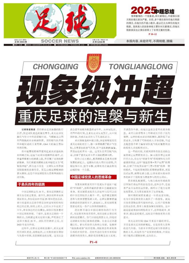 在中超赛场即将再度响起重庆球迷的热血呐喊之际,这座与足球深度羁绊的城市,正带着涅槃重生的磅礴力量,开启属于足球的崭新篇章。我们将重庆铜梁龙的冲超定义为“现象级冲超”,因为这不仅是一支球队从草莽到顶级联赛的逆袭传奇,更是山城足球精神的薪火赓续,也是中国足球投资人思维革新的生动实践。
